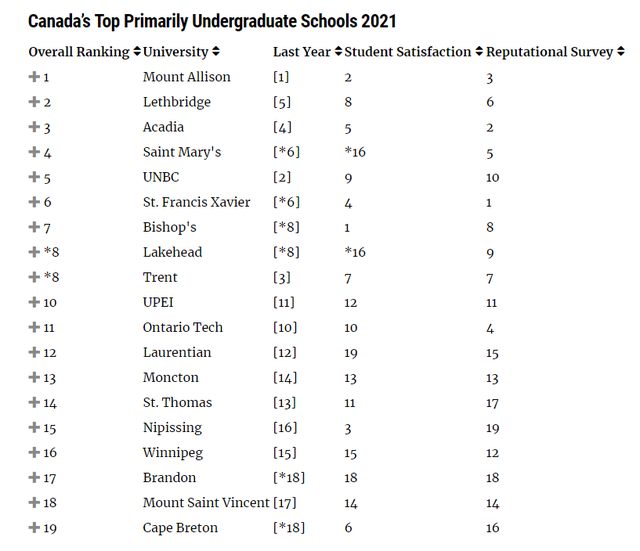 2021年,在49所加拿大大学的名誉度排名中,多伦多大学包揽3项第一,包括“最高质量(Highest Quality)”、“最具创新性(Most Innovatiive)”、“未来领导者(Leaders of Tomorrow)”。
