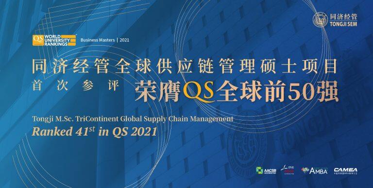 全球高等教育权威研究机构QS(Quacquarelli Symonds)发布2021年全球供应链管理硕士项目排名,同济大学经济与管理学院表现优异,首次参评且成功登榜,跻身全球50强,位列全球第41名。