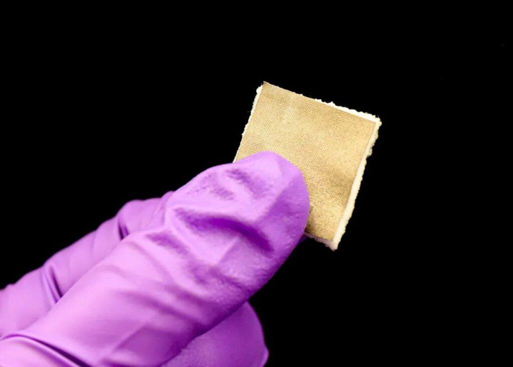因为它是由两层涂有镍的导电织物外层组成,用作电极,并被浸泡在离子液体中的多孔海绵包覆。离子液体是一种液态盐,可作为通电的管道。这两层可视为电容器,在电场中存储电能。同时,海绵中的离子提高了电容器的效能,能测量两层电极之间的距离变化。这种检测微小变化的能力是人造皮肤能够感知物体的原因。