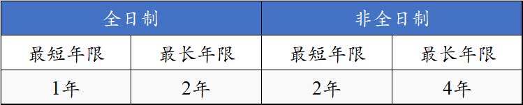 该硕士学位课程提供全日制及非全日制两种修读方式,具体课程时长如下:全日制课程为期一年(两个学期),最长不超过两年。非全日制课程为期两年(四个学期),最长不超过四年。