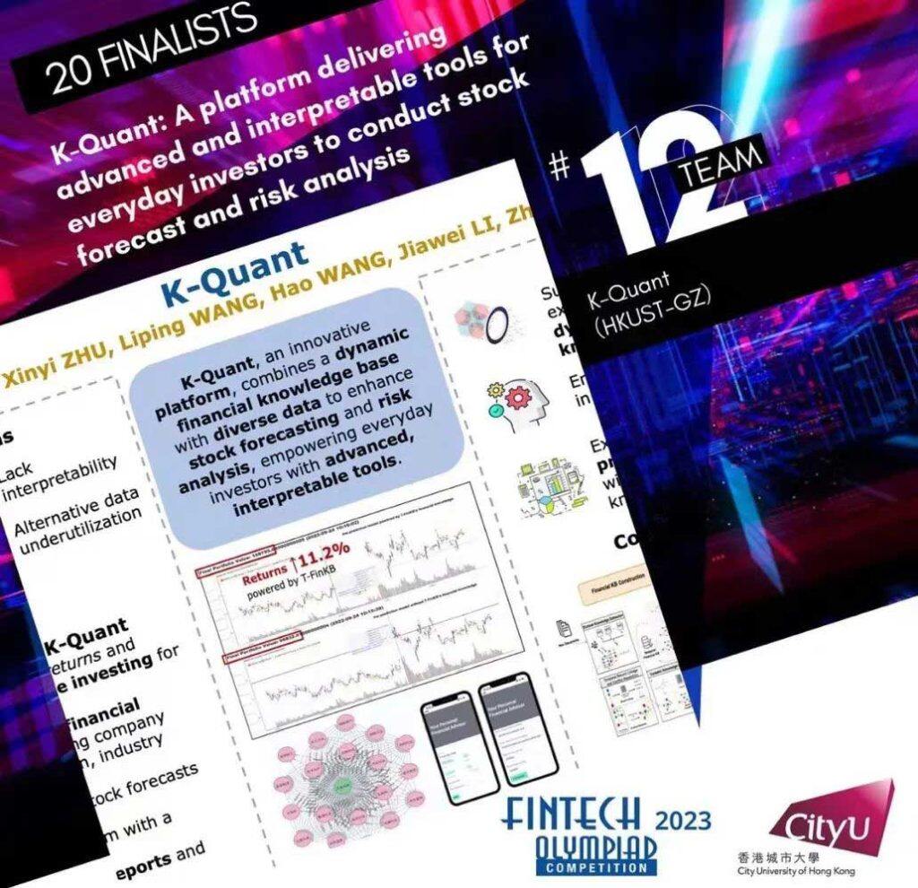 本次参赛的两个项目组员均为港科大(广州)学生,参赛经历令同学们印象深刻。获得大赛银奖的K-Quant团队表示,学校提供的广阔平台和交叉融合的跨学科氛围,使得项目顺利展开。“获得这个奖,我们非常荣幸、开心,首先要感谢学校给予了我们跨学科的研究氛围,才使得这次Fintech比赛中两支港科广的队伍脱颖而出。其次,我们特别感谢陈雷教授对我们的悉心指导”。陈雷教授认为:“虽然现在大语言模型很火,但是生成式模型做金融还是不可靠的,量化仍需要专家知识”。这深深启发了K-Quant项目,K-Quant希望将专家知识更好地表示出来。他们考虑到市场中复杂关系的影响,尝试以层次化的动态金融知识图谱形式驱动量化投资,并且赋予黑盒深度学习模型一定的解释能力,以便更好地服务金融科技行业。
