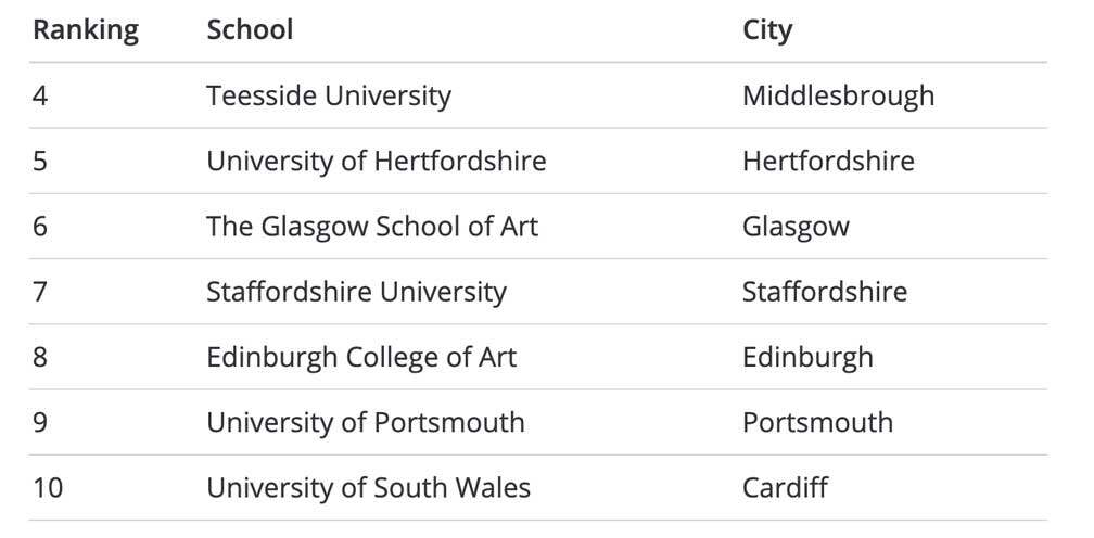 2024 Animation Career Review排名新鲜出炉,提赛德大学已经连续10年进入全球TOP20开设动画课程的院校榜单,全球排名第19,全英第4!