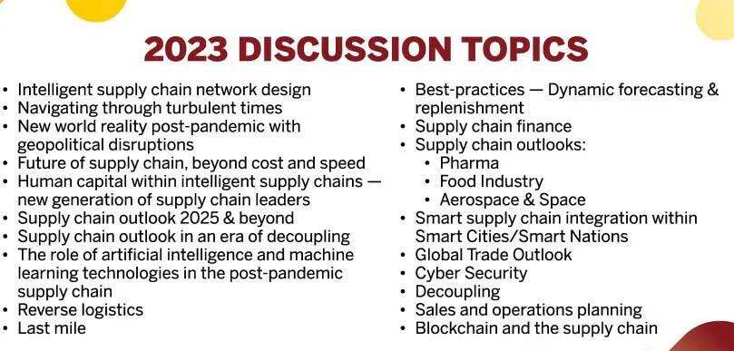 这是供应链行业最受认可和最受欢迎的活动之一,为解决全球关键供应链问题提供了重要的学习和交流机会。去年,2000多位来自世界五百强企业的供应链行业领导、高级执行官参与次会议。