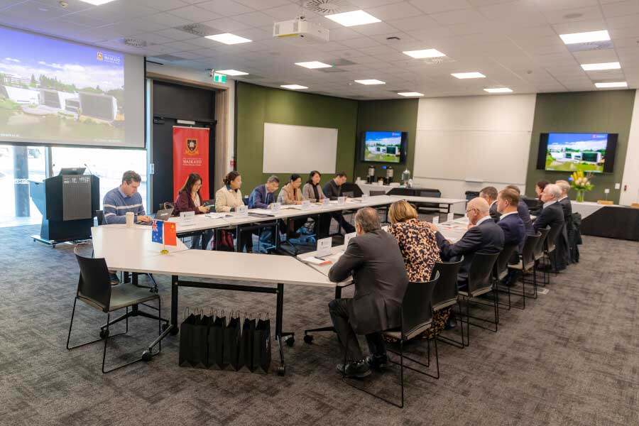 代表团与新西兰怀卡托大学领导,相关学部、学院负责人合影