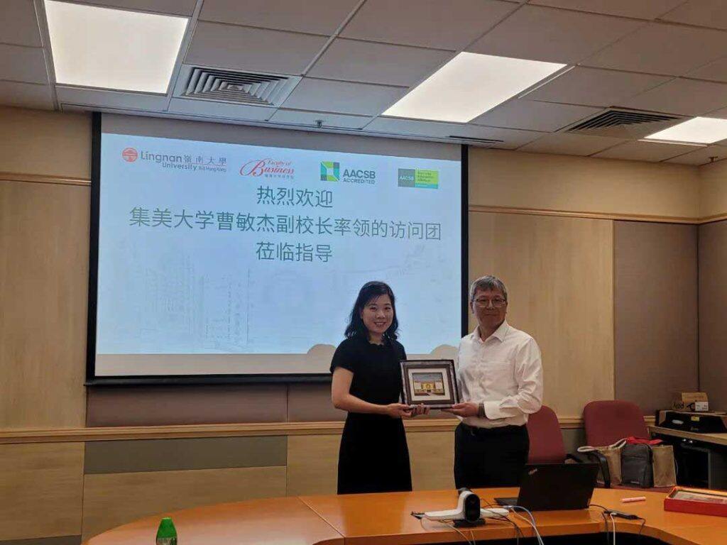 岭南大学商学院授课式研究生课程副总监、商学院副教授颜爱华教授,风险及保险管理理学硕士课程总监、财务学及保险学系副教授易浩然教授,艺术科技与商业理学硕士课程总监、管理学助理教授谢妮娜教授,岭南大学环球教育处李慧盈经理等热情接待了访问团,并分享岭大最新发展,介绍博雅教育理念。集美大学副校长曹敏杰教授介绍了集美大学的历史文化、大学架构,以及成就展望。