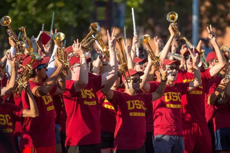 学生们在校友公园(Alumni Park)庆贺他们正式加入特洛伊家族,也成为了首批获知学生承诺的USC南加州大学新生。
