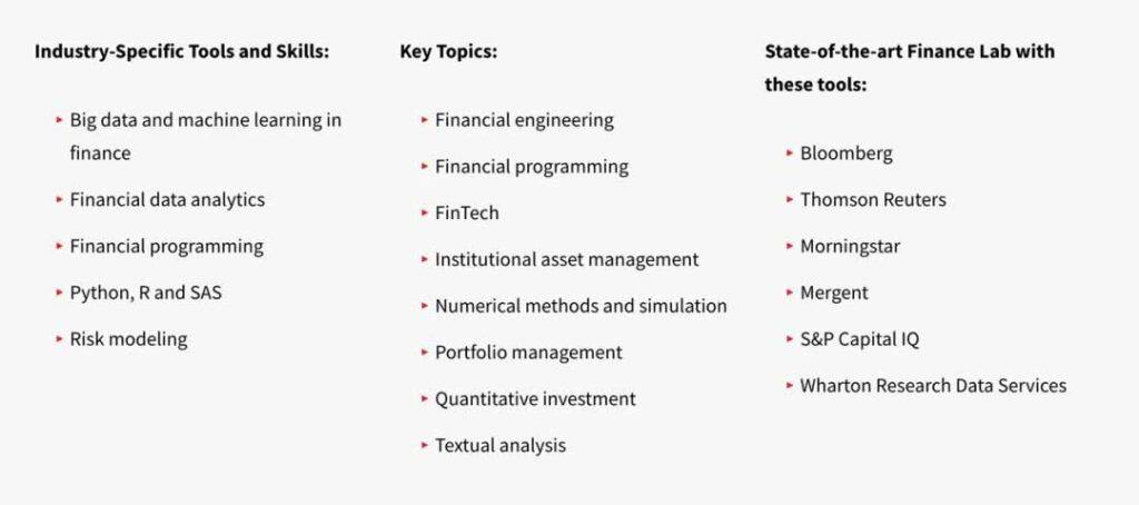 马里兰大学史密斯商学院的量化金融硕士项目(Master of Quantitative Finance)帮助你在金融机构中承担具有挑战性的,专业性强的量化角色做好准备。你将学会数据驱动的决策能力,熟练使用人工智能工具从各种来源中收集和处理数据,并使用最先进的计量经济学技术分析数据。你在项目中的学习经历有助于完善你的批判性思维和技术技能,在未来的职场凸显你的独特价值。